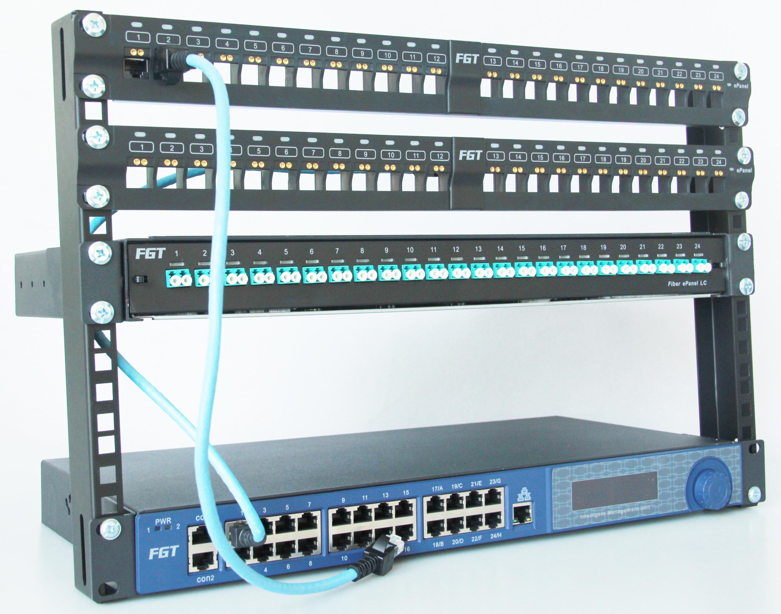 電子配線架,英文為E-panel或者Patch Panel,又稱“綜合布線管理系統”或者“智能布線管理系統”等,其基本功能是: 1.引導跳線,其中包括用LED燈引導的,顯示屏文字引導以及聲音和機柜頂燈引導等方式; 2.實時記錄跳線操作,形成日志文檔; 3.以數據庫方式保存所有鏈路信息; 4.以Web方式遠程登陸系統。
